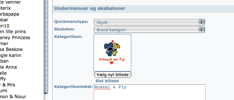 Først indstilles hovedkategorien til at vise ikonoversigten. Klik "Rediger" og scroll ned til punktet "Undermenuer og skabeloner" og indstil som vist på billedet herunder: